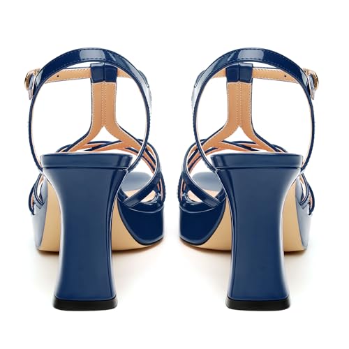 Strappy Heels for Women Square Open Toe Chunky High Heels Ankle Strap Heeled Sandals Comfort Dress Party Womens Sandals 3.3"