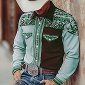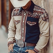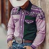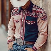 More information about Men's Geometric Aztec Ethnic Shirt Western Shirt Cowboy Shirt Long Sleeve Vintage Retro Outdoor Casual WorkWear Spring Fall Turndown Front Two Pockets Linen Like Shirt Button Up Shirts Pink Light