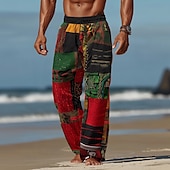 More information about Men's Color Block Patchwork Ethnic Trousers Baggy Pants Casual Pants Mid Waist Vintage Retro Outdoor Vacation Elastic Drawstring Waist Linen-Like Pants with Pockets Summer Spring Fall 3D Print Black