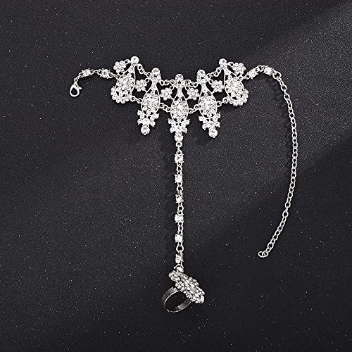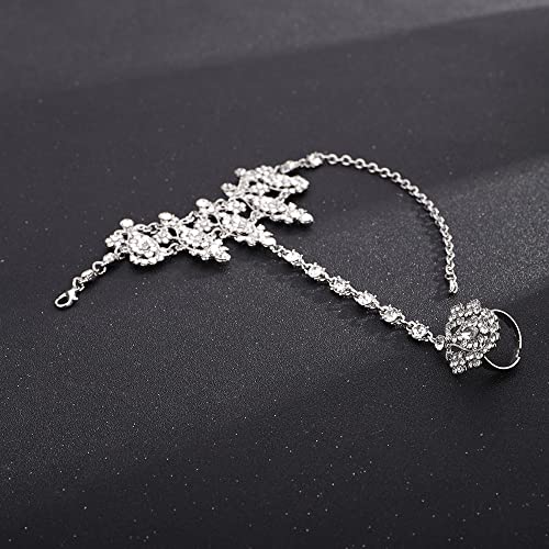 Denifery Silver Rhinestones Finger Ring Bracelet Hand Chain Bracelets with Ring Hand Harness Slave Bracelets Boho Bangle Bracelets Hand for Women 1