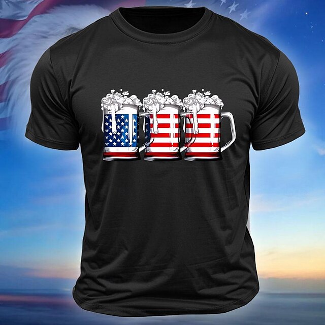 More information about Men's American US Flag Beer Flag / National flag T Shirt Short Sleeve Shirt Cotton Short Sleeve Graphic Shirt Black White Army Green Comfortable Tee Street Sports Outdoor Fashion Designer Clothing