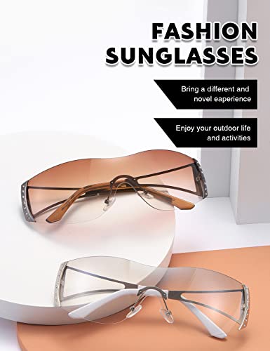 Y2K Sunglasses For Women Men Fashion Shield Rimless Wrap Around Sunglass Gradient Lens Trendy Oversize Sun Glasses 2
