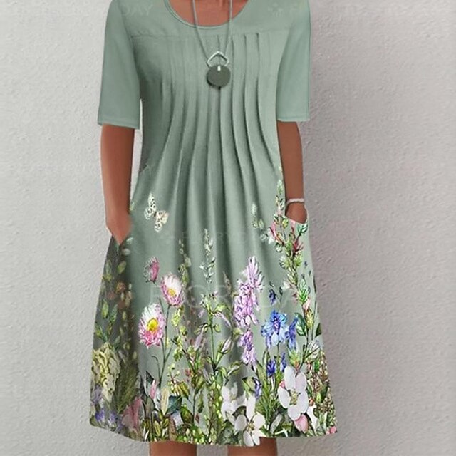 Highlights [Fabric and Material] : Crafted from high-quality polyester, this dress offers a lightweight and breathable experience, perfect for warm spring and summer days. Its micro-elasticity ensures a comfortable fit throughout your activities. [Silhouette and Fit] : The dress features a casual A-line silhouette that offers a relaxed and flattering fit for everyday wear. Its regular fit enhances both style and comfort, providing ease of movement. [Design Highlights] : Detailed with a beautiful floral print at the lower section, this dress brings a vibrant and elegant touch to your outfit. It comes with a crew neck and short sleeves for a classic, laid-back style. The ruched accents and practical side pockets add both sophistication and functionality to the overall design. [Occasions] : Ideal for holiday getaways, daily activities, outdoor adventures, and casual weekend outings. This dress effortlessly combines charm and minimalism, making it suitable for a variety of scenarios. [Size Range] : Available in a wide array of sizes, including S, M, L, XL, and XXL, ensuring that you find the perfect fit for your style and comfort needs.