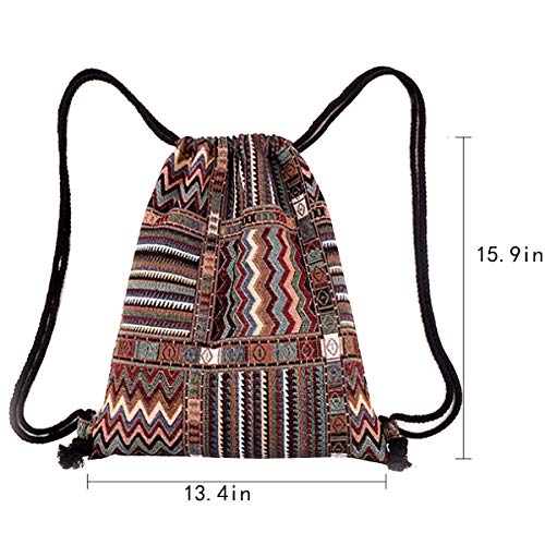 More information about Stripes Knit Drawstring Bag Sport Backpack Large Shoulders Bag Casual Daypack Purse Travel Tote Brown