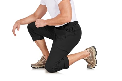 • Men's Pants With Belt & Easily Transform to Capris Pants:With your comfort and flexibility in mind,our tactical pants for men features with elastic waist pants on both sides, an adjustable waist belt,belt loops,button and zippered closure.With the innovative button design at the hem, easily transform them into 7/8 length pants, allowing to tackle unexpected weather changes or muddy trails with ease.