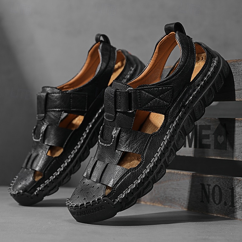 Men's Closed-Toe Suede Sandals - Lightweight Breathable Design with Adjustable Strap, Ideal for Summer Casual and Outdoor Activities 1