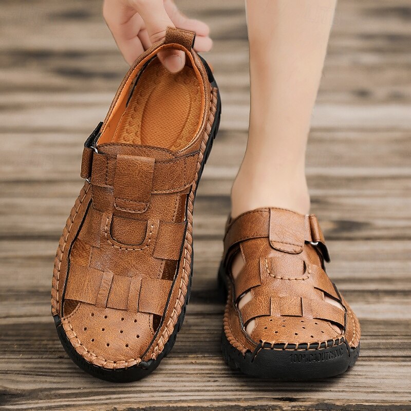 Men's Closed-Toe Suede Sandals - Lightweight Breathable Design with Adjustable Strap, Ideal for Summer Casual and Outdoor Activities 24