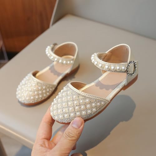 Girls Pearl Glitter Closed Toe Sandals Pearl Strap Ankle Wedding Elegant Princess Shoes Kids Girls Pageant Sandals 6