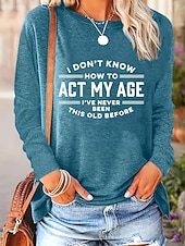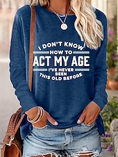 More information about Women's T Shirt Graphic Letter Vintage Fashion Stylish Long Sleeve Crew Neck Regular Tops Daily Weekend Print Navy Blue Blue Gray Spring Fall