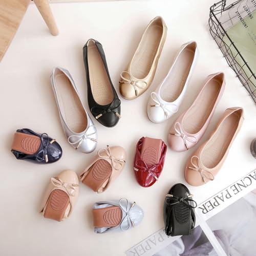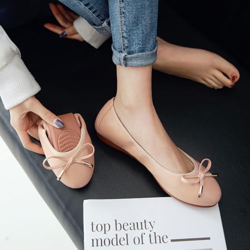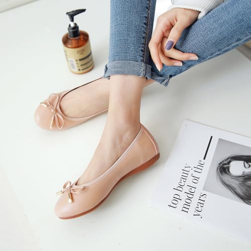 JiangWei Shu Women's Bow Knot Round Toe Soft Ballet Flats Slip On Walking Shoes 5