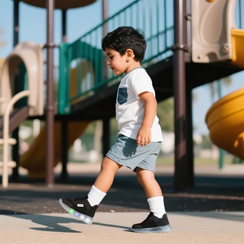• [Light Up Shoes]: The LED flashing soles on these toddler boy girl light up shoes are a hit with little ones! With over 400,000 flashes, light up shoes for girls boys keep kids excited and visible during evening play. Spark your child's excitement to wear shoes with these magical light up sneakers that make getting dressed fun