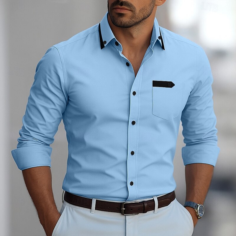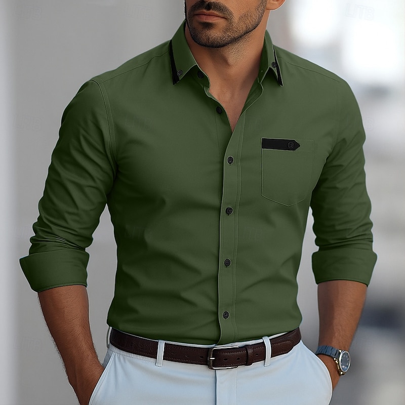 More information about Men's Shirt Dress Shirt Plain Formal Wedding Wine Blue Green khaki Long Sleeve Turndown Summer Spring Clothing Apparel Patchwork