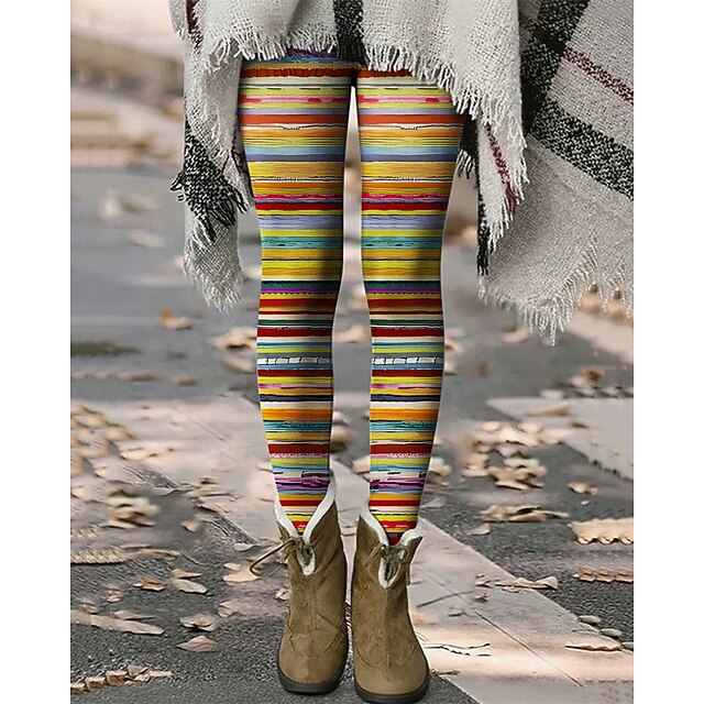 trending ! Women's Pants Trousers Leggings Cozy Leggings Streetwear Casual Full Length High Waist Striped Elastic Waist Print Breathability relaxing Stretchy Vacation Street Daily Wear White Yellow Pink Red