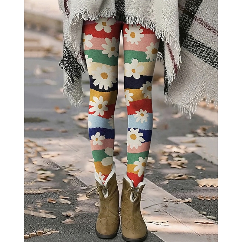 More information about Women's Pants Trousers Leggings Cozy Leggings Streetwear Casual Full Length High Waist Striped Elastic Waist Print Breathability pleasant Stretchy Vacation Street Daily Wear White Yellow Pink Red
