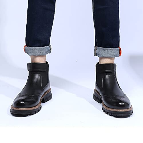 MOYOWEI Men's Leather Dress Chelsea Boots,Classic Carving Floral Wingtip Block Slip on Casual Business Oxford Ankle Booties 5
