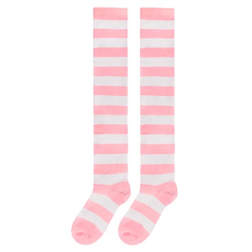 Littleforbig Cute Knee High School Girl Long Striped Socks 2 Pairs - Pink and Black 5