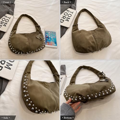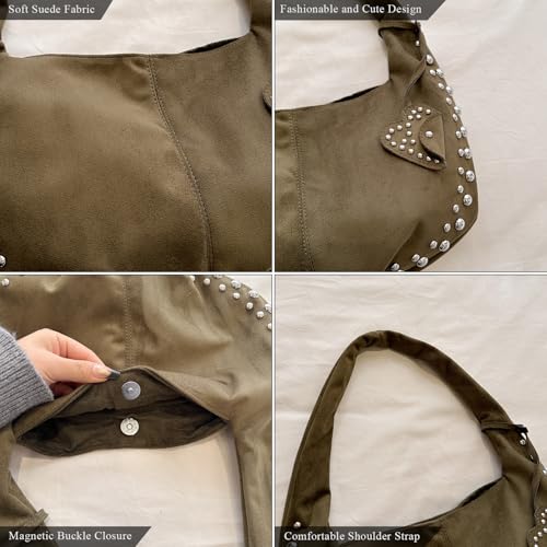HOT ! Suede Bags for Women Studded Purse Suede Handbag Y2K Fall Suede Purse Trendy Suede Shoulder Bag