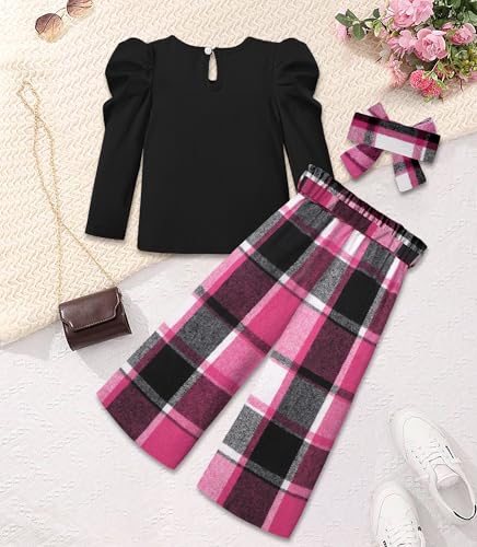 • 【Chic Autumn Design】This toddler girls outfit features a black long-sleeve top with bubble sleeves, paired with cherry pink trousers for a bold, seasonal look. A matching headband adds extra charm, creating a stylish and coordinated outfit perfect for fall.