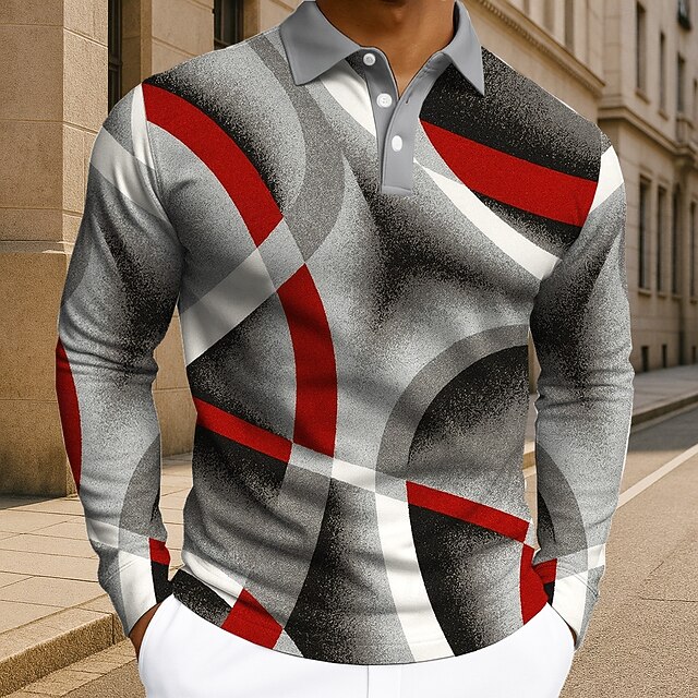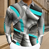 More information about Men's Geometic Polo Long Sleeve Polo Shirts Lapel Casual Athleisure Daily Wear 3D Print Buttons Spring Fall Winter Red Blue Green