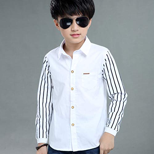 HOT ! Youth Boys Regular Fit Dress Shirt Kids Striped Long Sleeve Button Down Shirts School Wedding Prom Aesthetic Formal Outfits