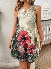 More information about Valentine's Day Women's Normal Knee Length Dress Summer Dress Spring Dress Elegant Stylish Sexy Sleeveless Holiday Date Beach Form Fit Floral Ditsy Floral Sleeveless Crew Neck Red Dark Blue Apricot