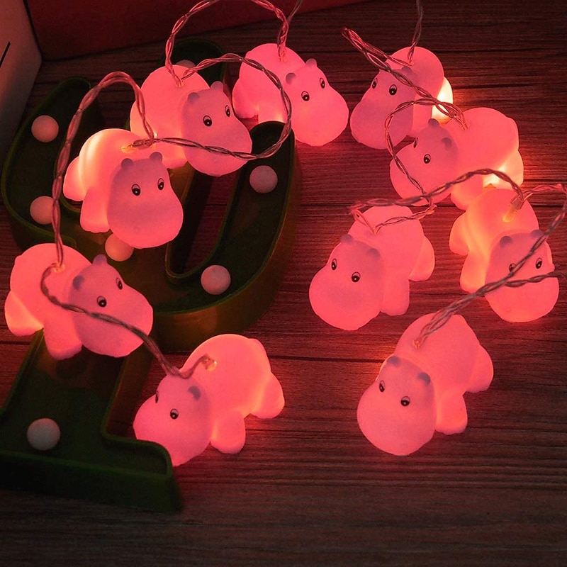 Cute Yellow Duck Sheep Hippo Animal Shaped LED Fairy String Lights 1.5M 10LEDs Indoor Outdoor Christmas Wedding Birthday Party Garden Children's Room Decoration 7