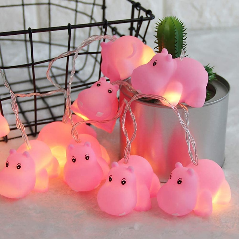 Cute Yellow Duck Sheep Hippo Animal Shaped LED Fairy String Lights 1.5M 10LEDs Indoor Outdoor Christmas Wedding Birthday Party Garden Children's Room Decoration 9