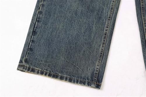 Men’s Single Breasted Distressed Denim Jeans, Vintage Gradient Color, Wide Leg, Loose Fit 6