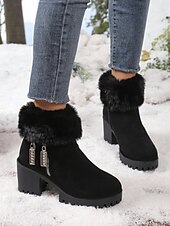More information about Women's Black Faux Suede Fur-Lined Ankle Boots, Warm Zip-Up Chunky Heel Winter Booties for Snow, Outdoor Wear & Christmas Outfits