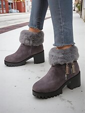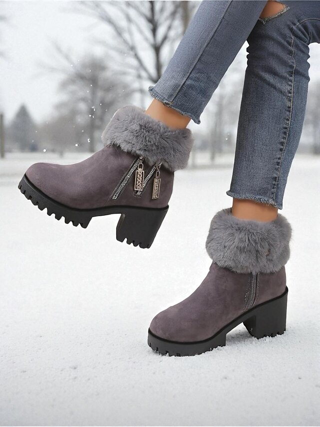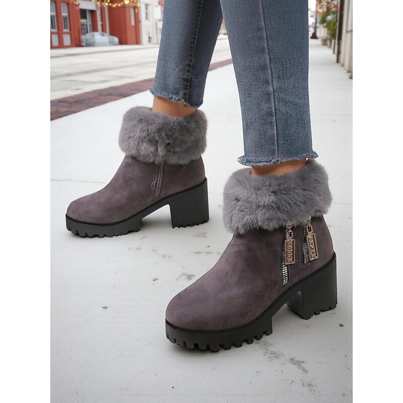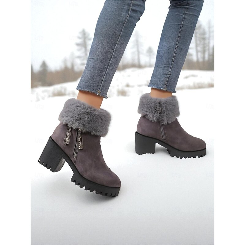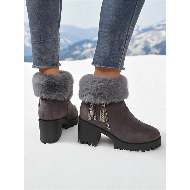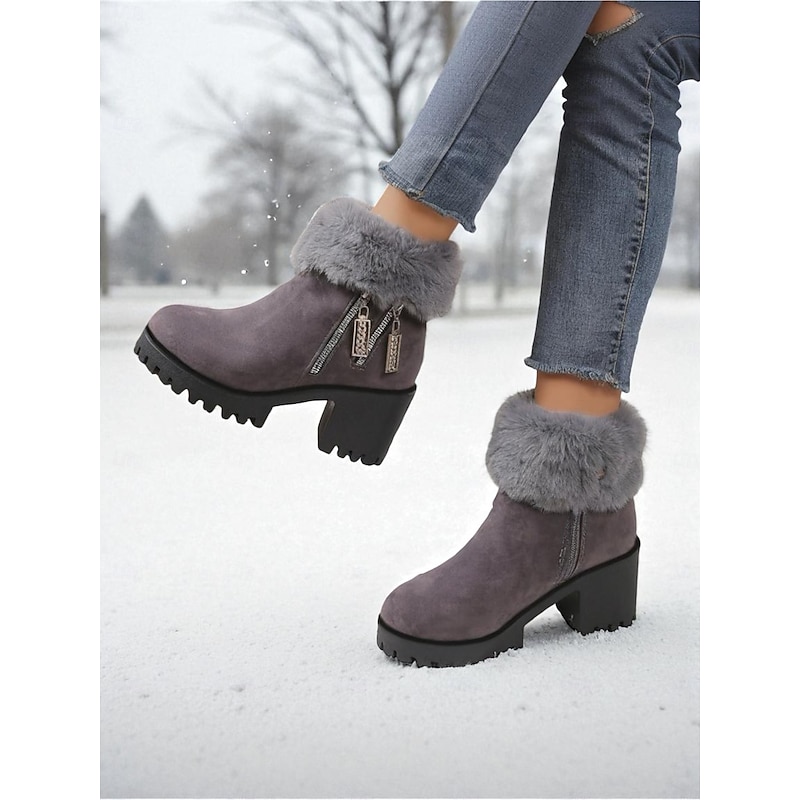 Highlights - Luxurious faux fur and suede upper materials - Stylish chunky heel for added comfort and stability - Chic round toe shape for a modern look - Durable rubber outsole for long-lasting wear - Stay on trend with snow boots in 2025