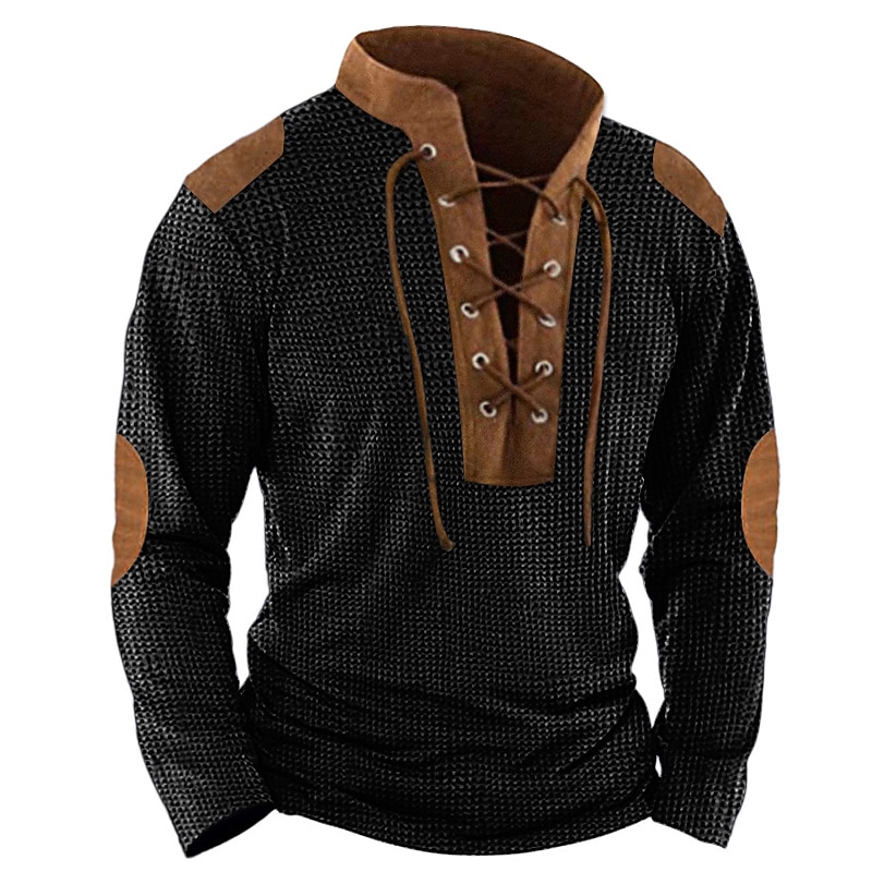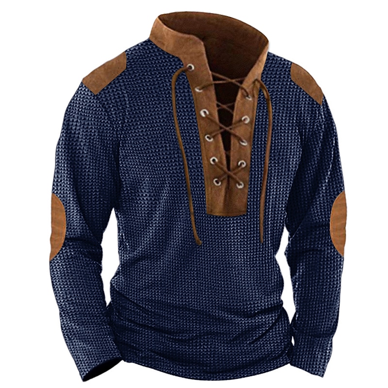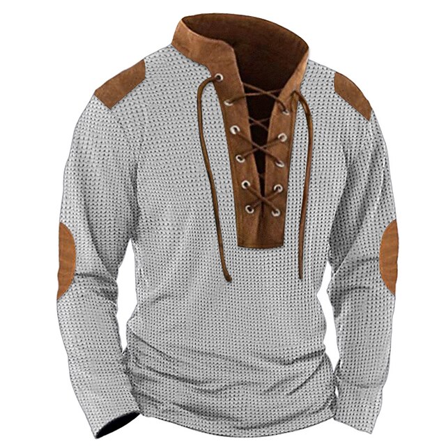 More information about Men's Waffle Shirt T Shirt Tee Top Long Sleeve Shirt Long Sleeve Collar Spring & Fall Color Block Vintage Designer Basic Lace up Patchwork Vacation Street Going out Black Blue khaki Top Tee for Men