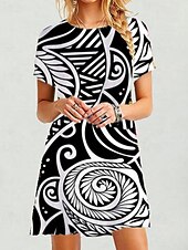 More information about Women's Mini Dress Casual Dress Floral Dress Classic Modern Vacation Daily Holiday Regular Fit Geometric Short Sleeve Crew Neck Black Orange Summer