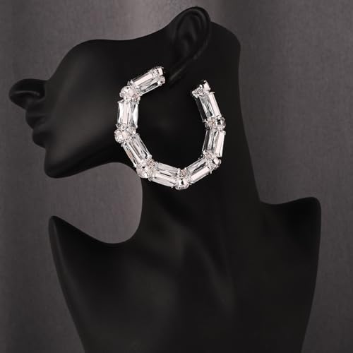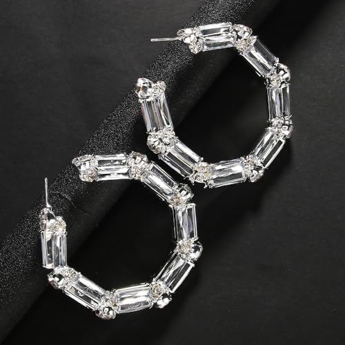Silver Hoop Earrings for Women – Big Statement Rhinestone Hoops Sparkly Crystal Large Hoop Earring for Women Trendy Prom Wedding Jewelry Gifts 7