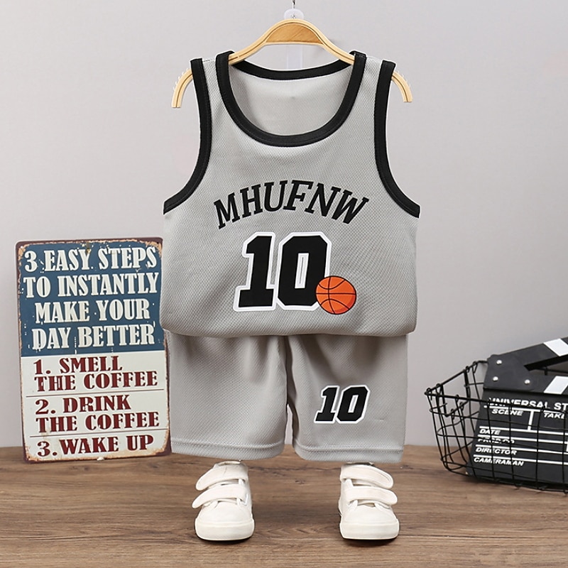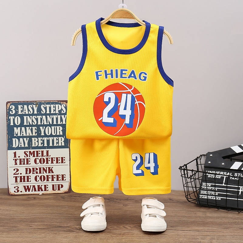 HOT ! 2 Pieces Kids Boys Tank & Shorts Outfit Cartoon Number Letter Sleeveless Crewneck Cotton Set Outdoor Sports Cool Summer Spring 7-13 Years Black White Yellow