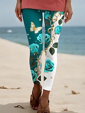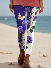 More information about Women's Pants Trousers Leggings Streetwear Casual Full Length High Waist Floral Elastic Waist Print Breathability Comfortable Stretchy Vacation Street Daily Wear Navy Blue Blue Purple Fuchsia Summer