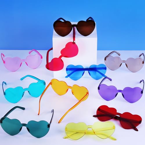 36 Pack 12 Colors Heart Shaped Sunglasses,Retro Artistic Style Party Favors Sun Glasses Bulk for Carnival,Goody Bag Stuffers,Summer Pool Toys,Beach Party Supplies,Birthday,School Gift for Boy and Girl 1