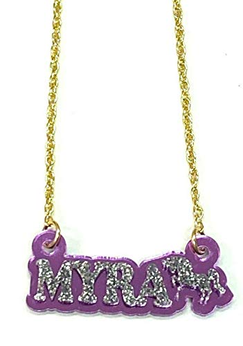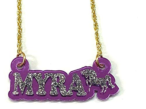 • Gorgeous Laser Cut Custom Necklace. Comes With: 24" gold chain. Your Name - it doesn't matter how plenty of letters are in your name. You could also put a nickname or word. letters are silver glitter as shown. font is same as shown in sample Our customers tell us all the time they can never find their name. This is faultless because we can custom make any name.