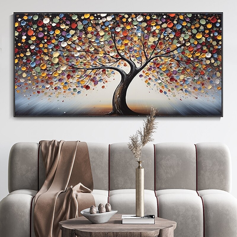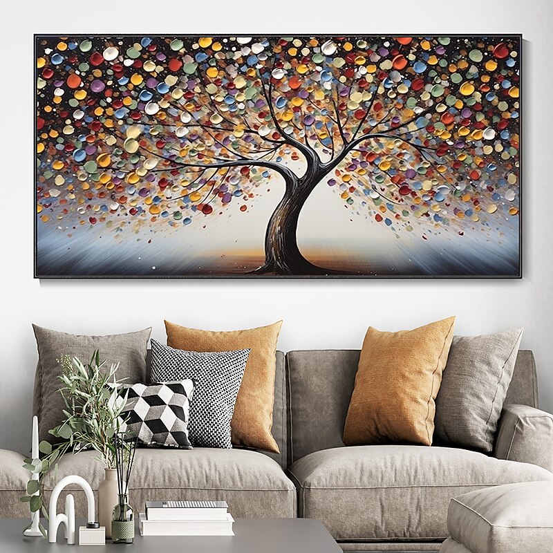 More information about Hand Painted Wall Art Abstract Colorful Tree Canvas Oil Painting Handmade Textured Landscape Painting Hand Painted Forest painting Home Decoration Decor Rolled Canvas
