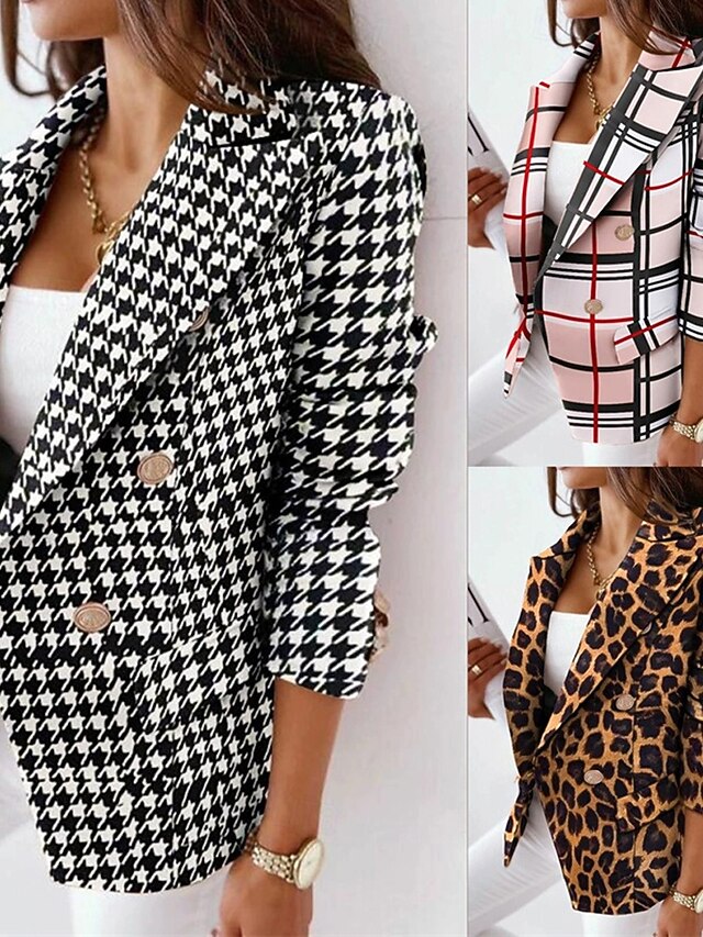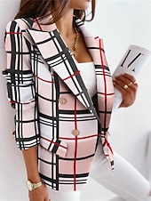 More information about Women's Blazer Comfortable Buttons Elegant Fashion Outdoor Color Block Going out Casual Daily Weekend Double Breasted Regular Lapel Regular Fit Long Sleeve Outerwear Black Yellow Pink Spring Fall