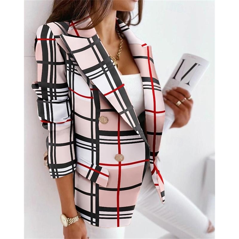Women's Blazer Comfortable Buttons Elegant Fashion Outdoor Color Block Going out Casual Daily Weekend Double Breasted Regular Lapel Regular Fit Long Sleeve Outerwear Black Yellow Pink Spring Fall 10