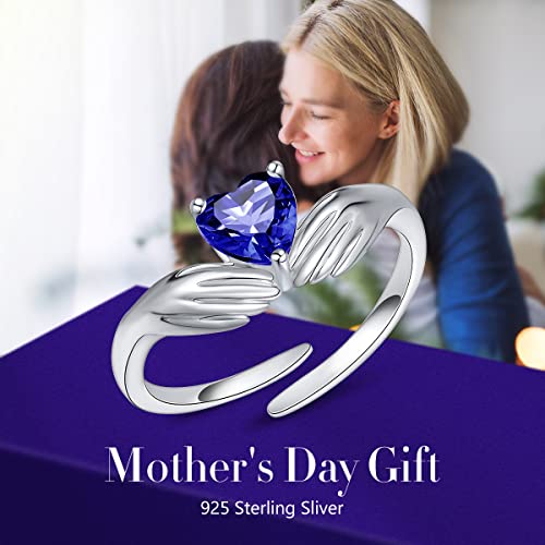FOREVER QUEEN Heart Birthstone Ring 925 Sterling Silver Hug Ring for Women Girls Adjustable Hugging Hands Come to My Arm Embrace Ring Birthday Anniversary Valentine Mother Day Gift 5