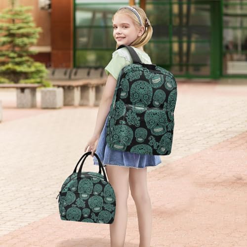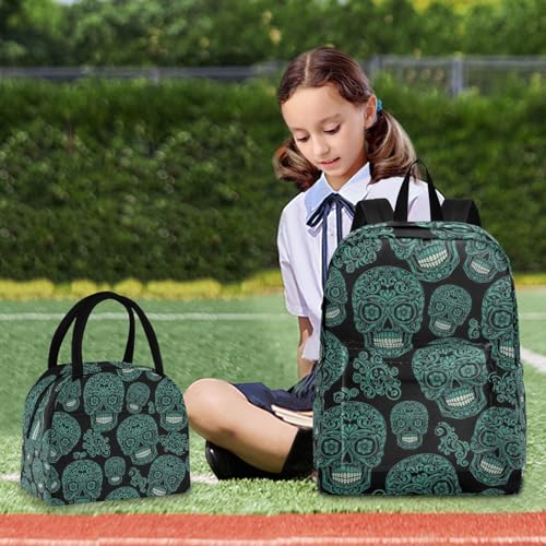 Kids' Backpacks Waterproof Cooler Bags Insulated, Elementary School Backpacks, Funny Teal Skulls Black