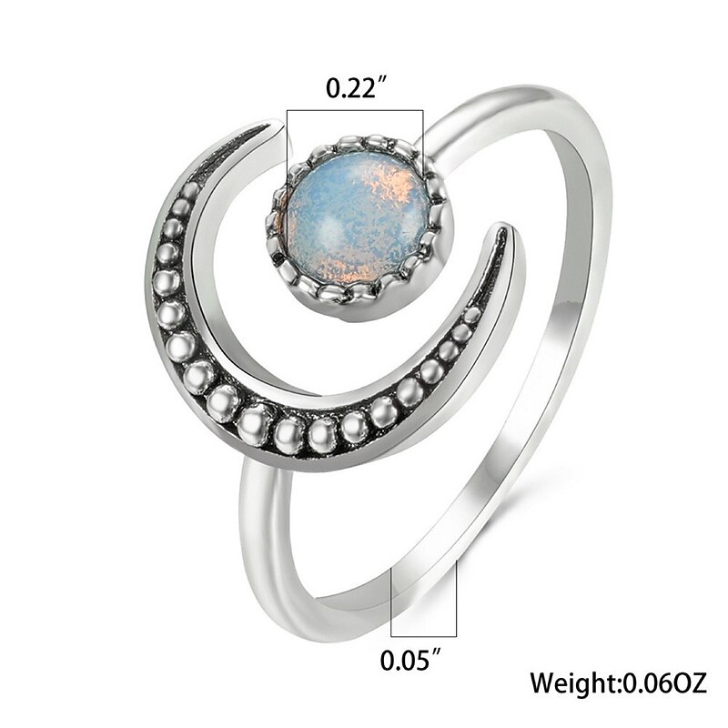 1PC Ring Adjustable Opening For Women's Alloy Retro Moon Daily 11