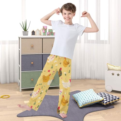 Chicken Daisy Flowers Boys Long Pants Soft Trousers Elastic Waist Kids Lounge Bottoms with Pockets S-XL 6