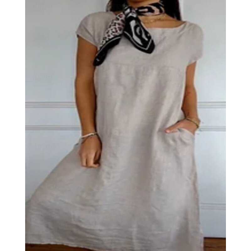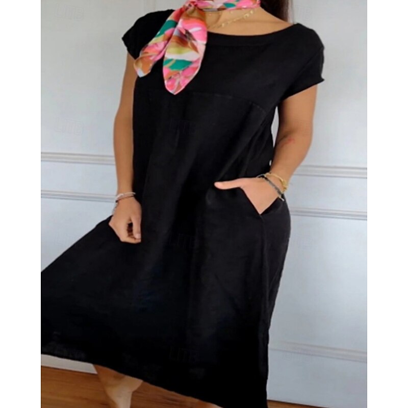 More information about Women's Midi Dress Casual Dress Cotton Linen Dress Fashion Classic Outdoor Holiday Going out Regular Fit Plain Short Sleeve Crew Neck Black White Khaki Summer