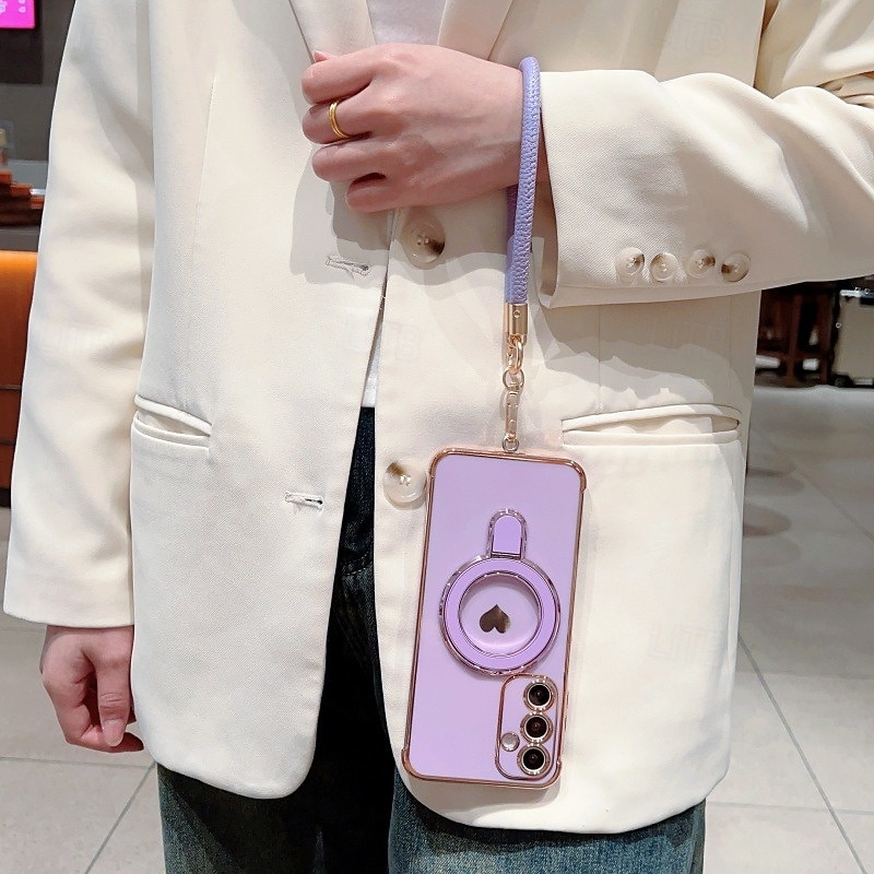 HOT ! Phone Case For Samsung Galaxy S21 FE A16 A25 A15 A14 A34 A24 A53 A33 A13 Back Cover with Wrist Strap Shockproof Retro TPU Plating