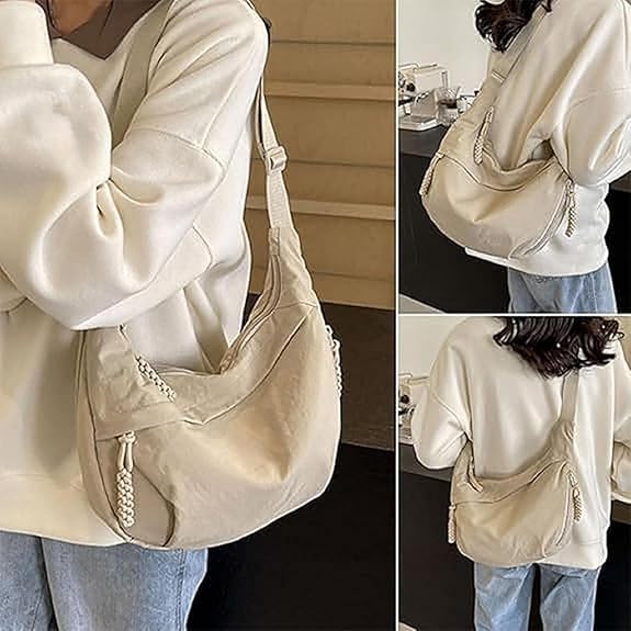 HOT ! Quantifyn Crossbody Bag, Quantifyn Women Fashion Plain Color Nylon Crossbody Hobo Bag, Divider Inside, Adjustable Strap