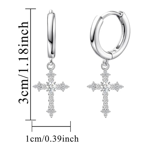 HOT ! Sterling Silver Cross Earrings for Women White Gold CZ Cross Dangle Hoop Earrings Cuff Cartilage Hypoallergenic Sparkling Cross Huggie Earrings For Men Women Easter Jewelry Gifts Birthday