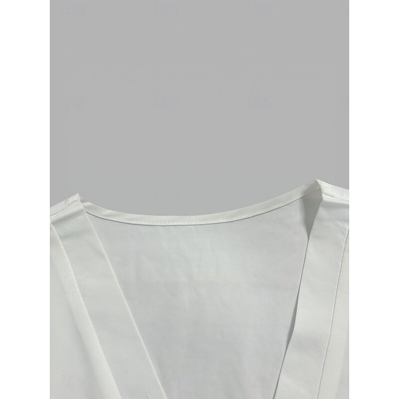 More information about Women's Shirt Blouse Solid Color Stylish Casual Long Sleeve V Neck Regular Tops Daily Lace Patchwork White Summer Spring