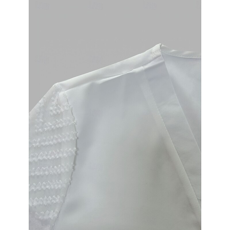 Women's Shirt Blouse Solid Color Stylish Casual Long Sleeve V Neck Regular Tops Daily Lace Patchwork White Summer Spring 6